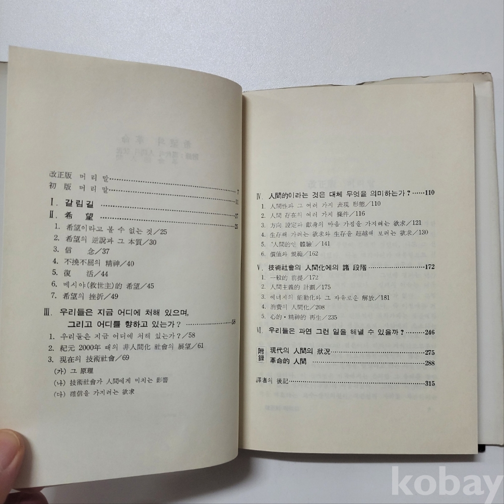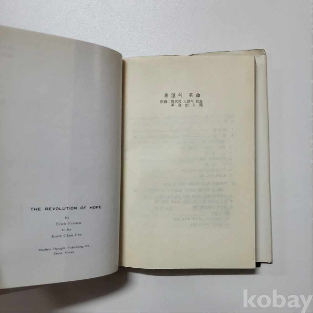 [희귀본] 에리히 프롬의 희망의 혁명 - 현대사상총서 15 : 중급/서고-종103