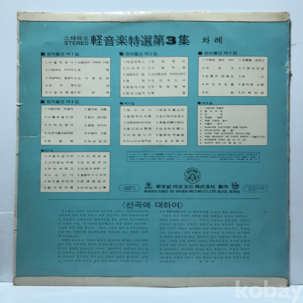 EX : 약간의 마모, 모서리 찢김 존재 음반상태