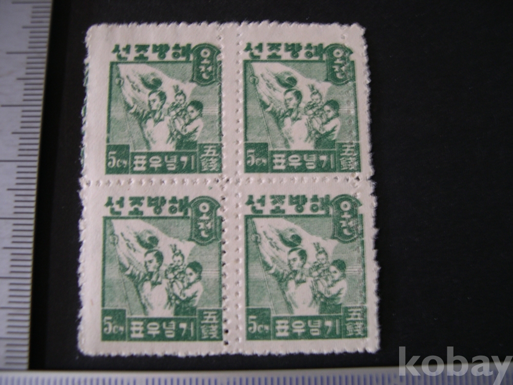 2중천공 4매블럭 애러 #117 : 5전 가족과 국기 - 해방 기념 (1946. 5. 1)