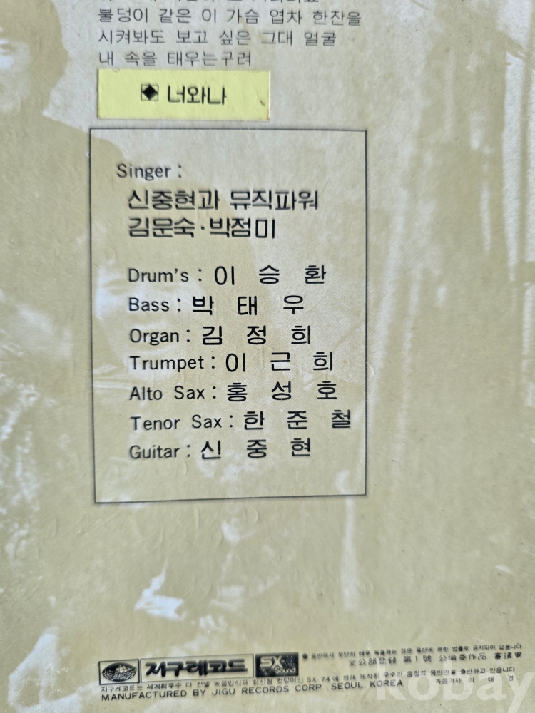 | 자켓상태 | EX : 약간의 마모, 모서리 찢김 존재 | 음반상태 | VG : 생활 기스 다수, 가벼운 노이즈 존재 | 발매정보 | 초반 | 가사지여부 | 무 |