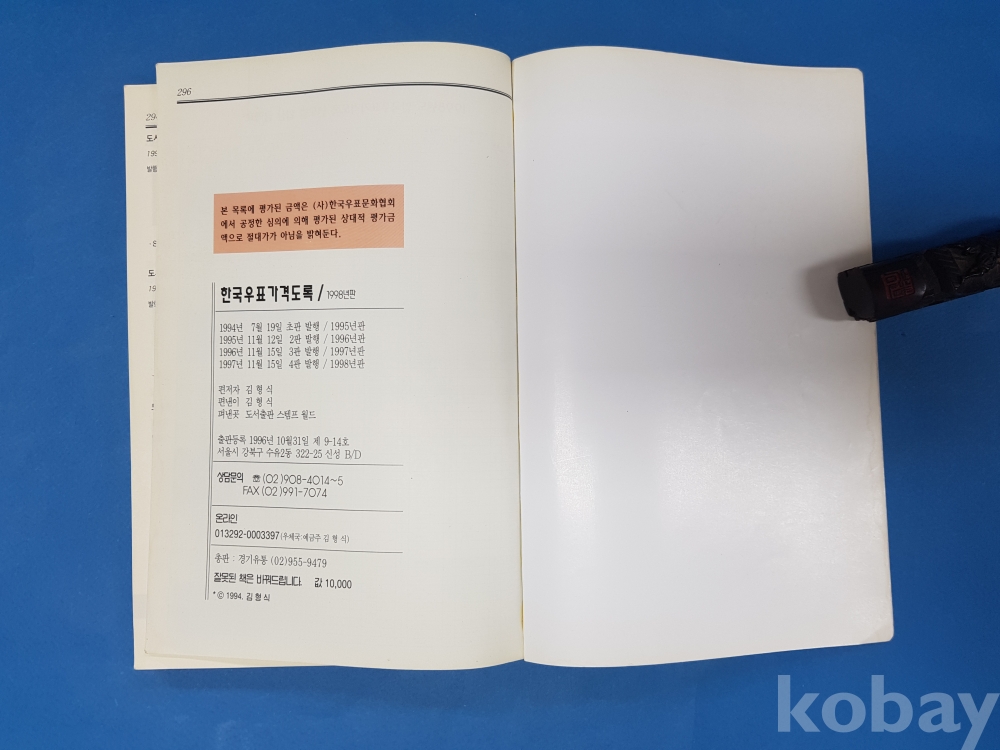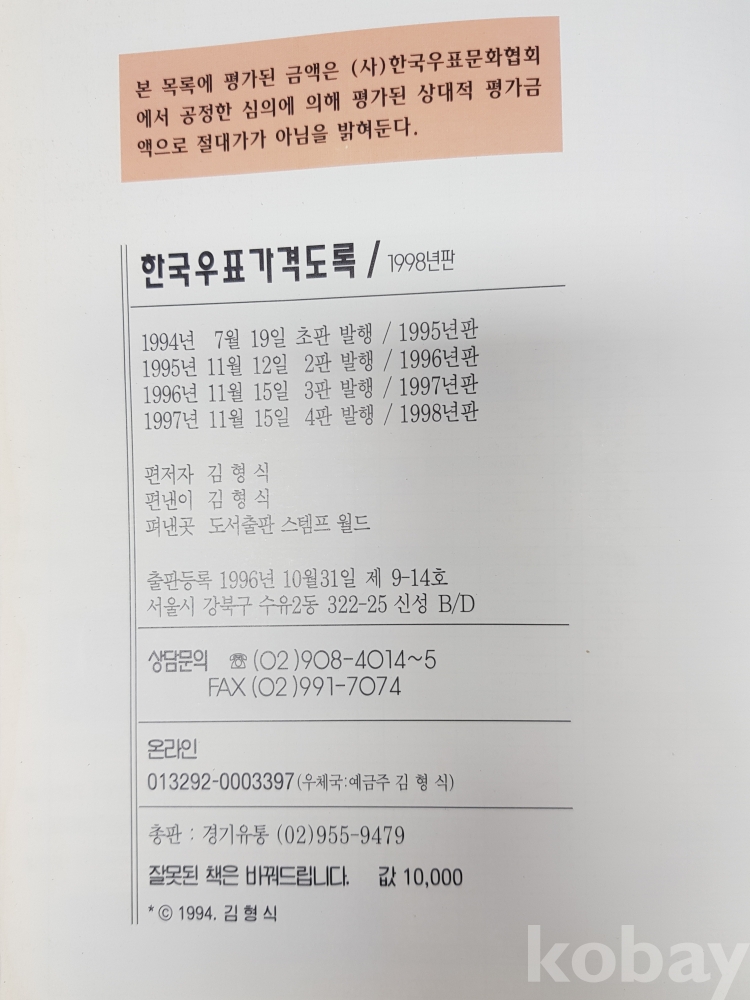 **** 한국우표가격도록*1998년도/296페이지/사단법인 한국우표문화협회