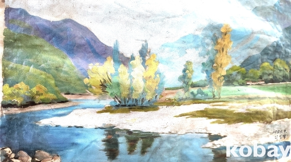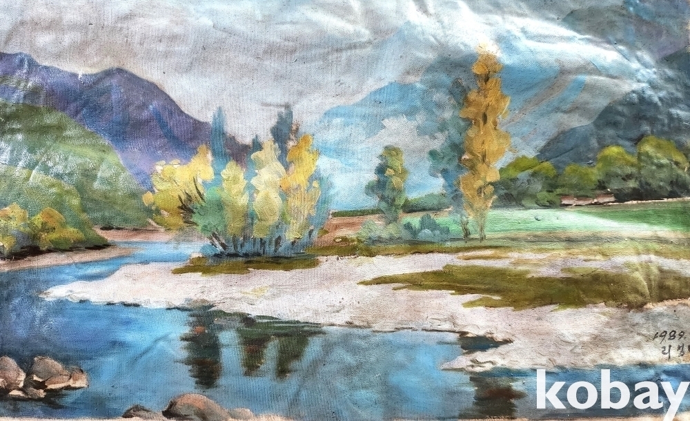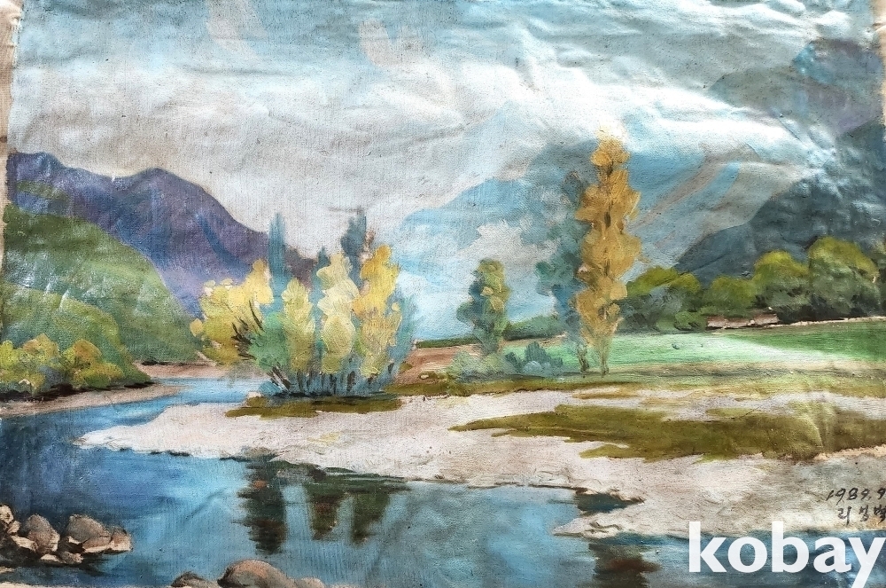 북한인민화가 리성벽 1989년 作 켄버스 유화 풍경화입니다