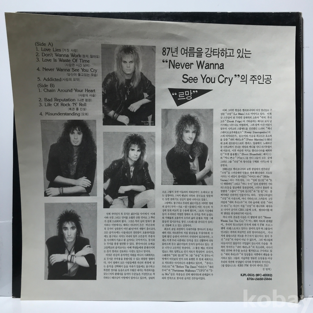 | 자켓상태 | EX : 약간의 마모, 모서리 찢김 존재 | 음반상태 | NM : 개봉했으나 미사용급, 스크래치 없음 | 발매정보 | 알수없음 | 가사지여부 | 무 |