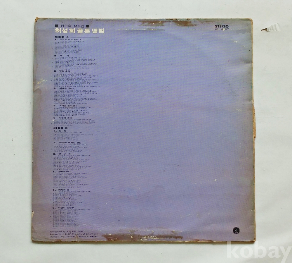EX : 약간의 마모, 모서리 찢김 존재 음반상태