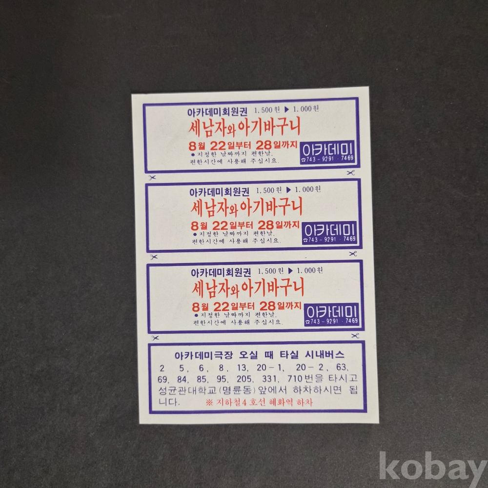 [희귀 근대사 자료] / (영화카드/리플렛/회원권/엽서/광고카드 등) / 세남자와 아기바구니