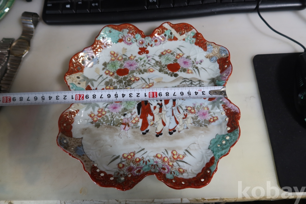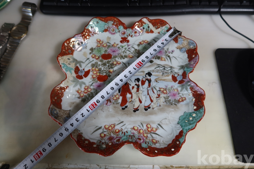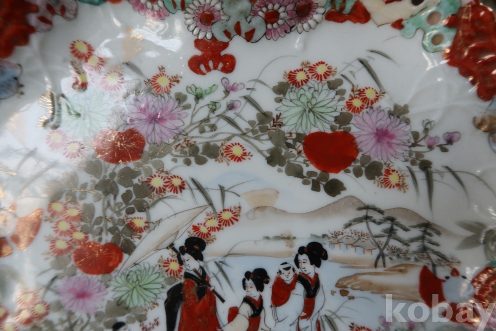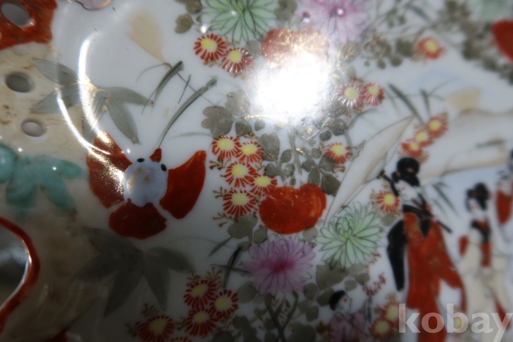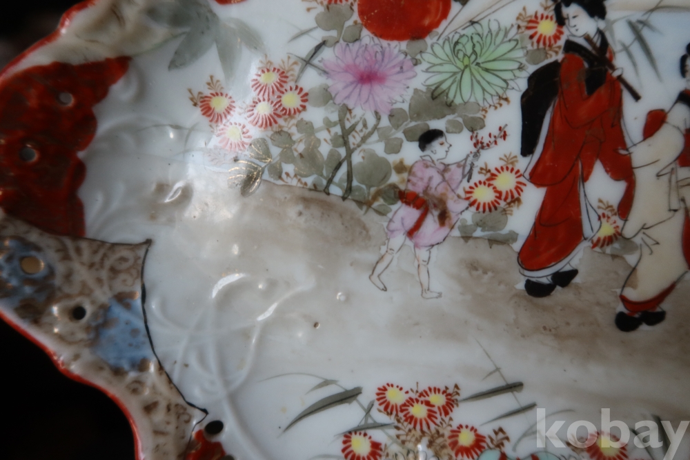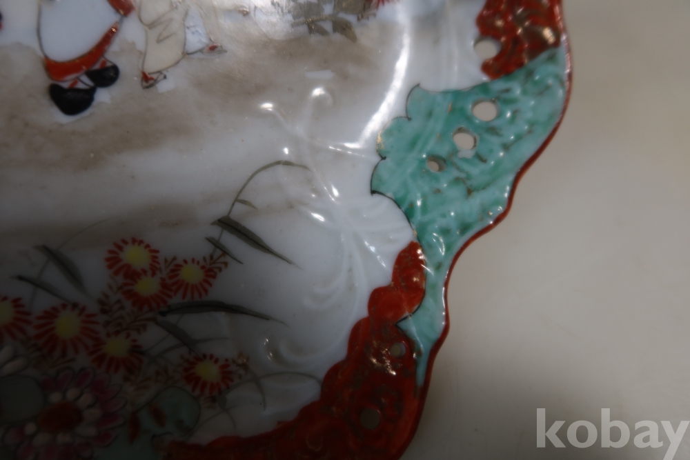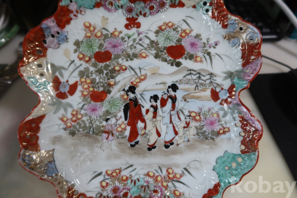 특이한 디자인 양각 처리된 문양 등등 명치기/1920의 구미 유럽 수출 도자기 임니다 테두리?에는 구멍 처리 된 기술이 보임니다