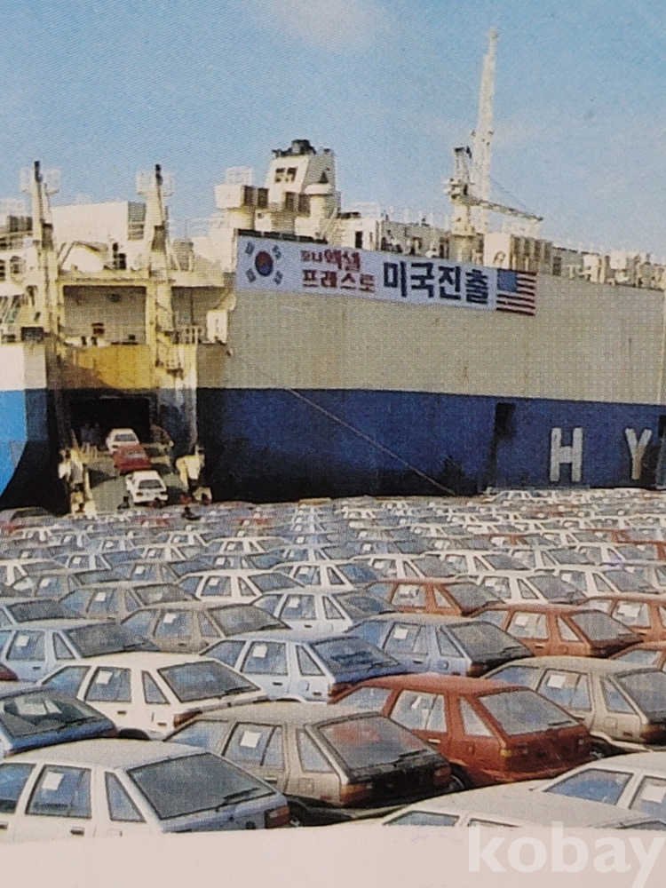 첫장에 포니엑셀, 프레스토 미국수출 선적 장면이