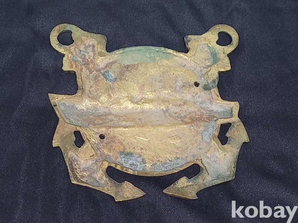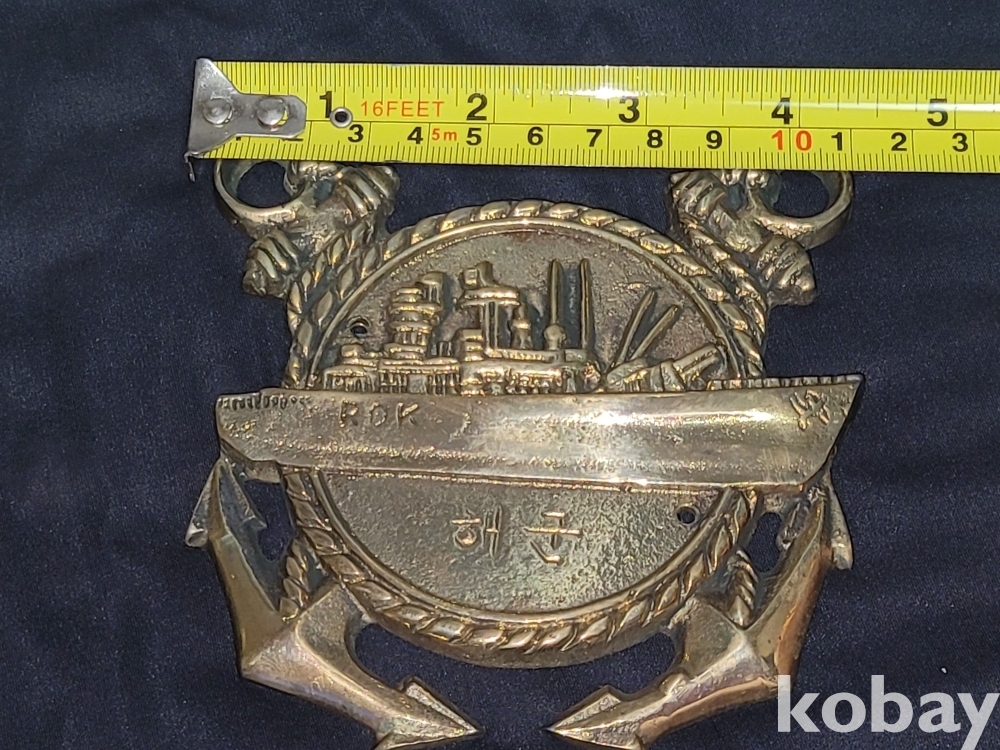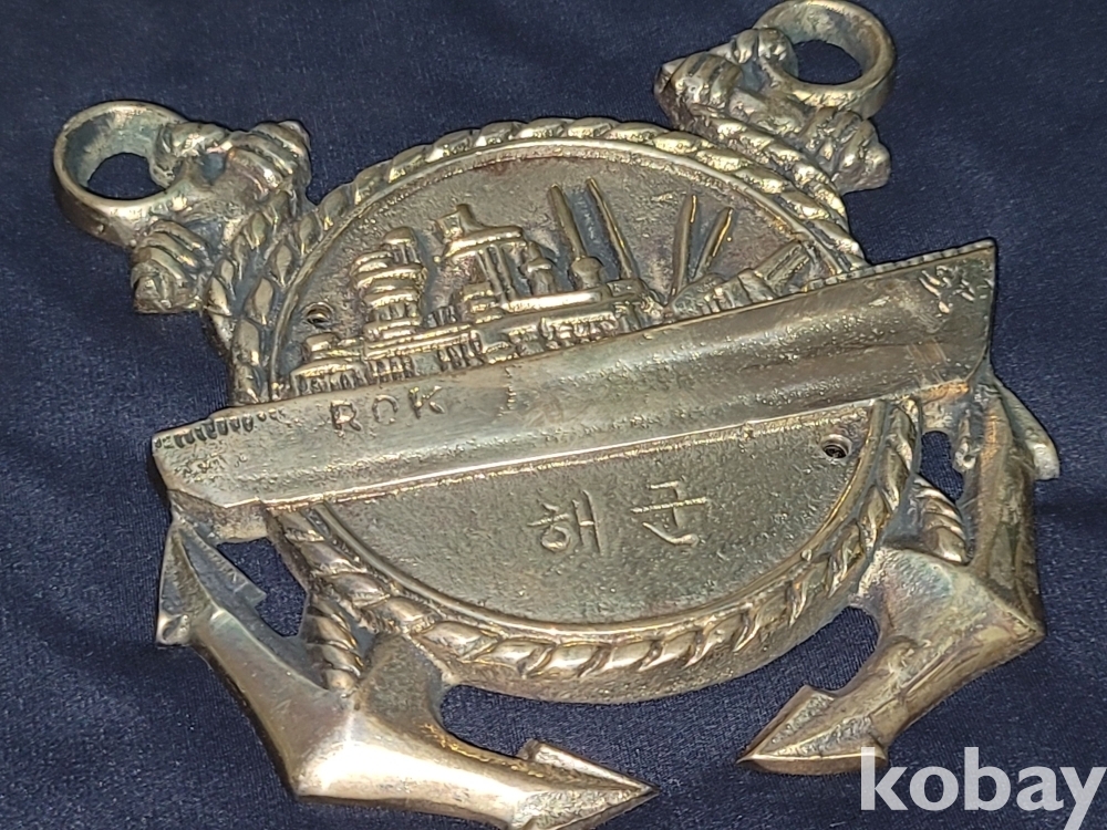 빈티지 해군 ROK 각인 군함모양 동패 장식입니다.