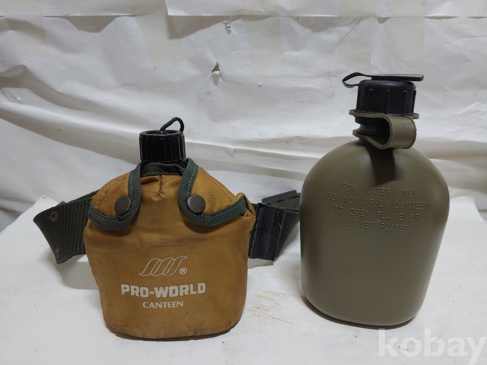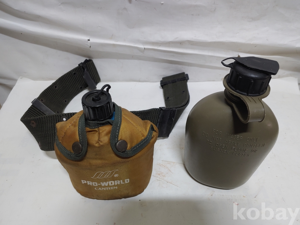 벨트가 있으며 수통피에 들어 있는 청색 수통은 양은으로 미사용이며