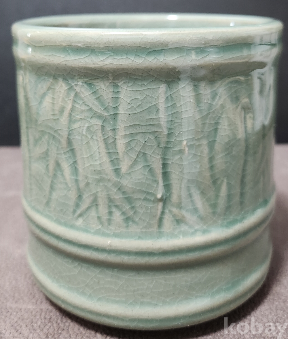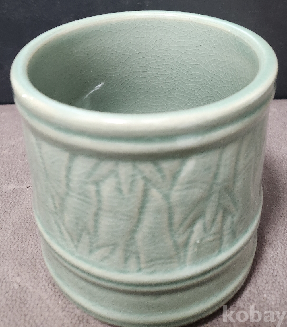 평산도요 [平山陶窯] 평산平山 신재균 < 청자음각대나무문필통 靑瓷陰刻竹紋筆筒 >