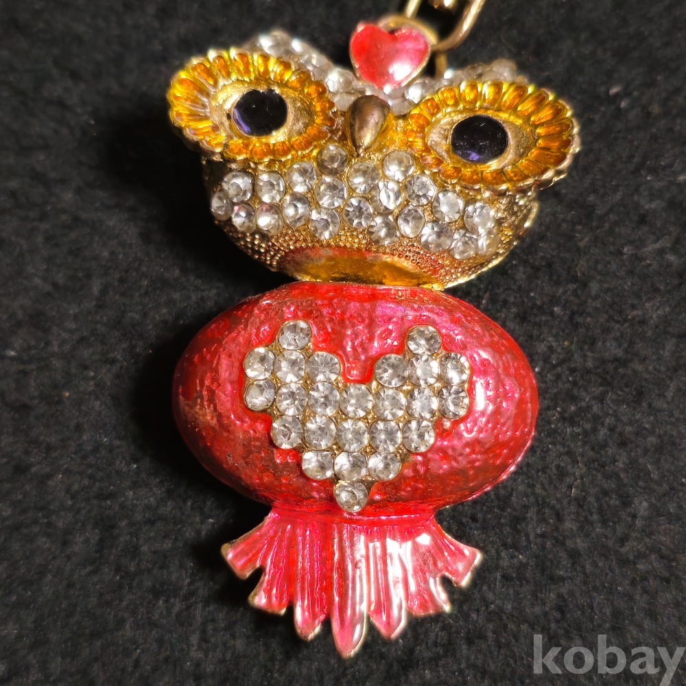 (((키홀더/키링/열쇠고리/가방고리))) 오래전 많은 구슬부착 부엉이모습 금속 키홀더