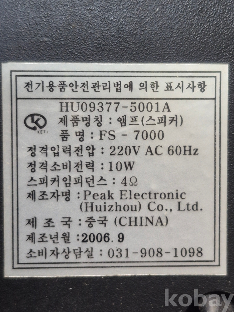 2006년 FOHENZ 컴퓨터용 스피커 FS-7000 정상작동 전원 220볼트 7*7*17