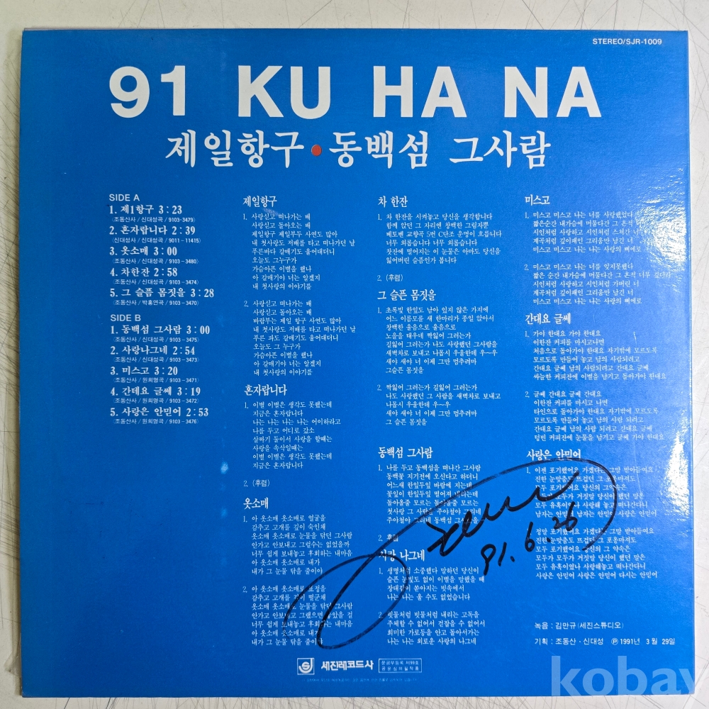 | 자켓상태 | VG : 주름, 접힘, 모서리 찢김 다수 | 음반상태 | VG : 생활 기스 다수, 가벼운 노이즈 존재 | 발매정보 | 초반 | 가사지여부 | 무 |