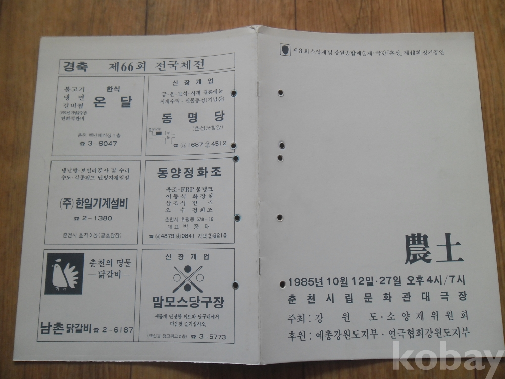 공연목록: 1985년 강원종합예술제 극단 혼성 정기공연 농토