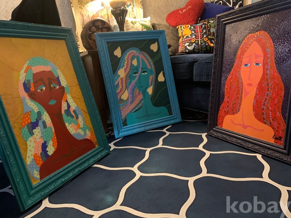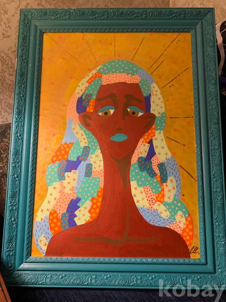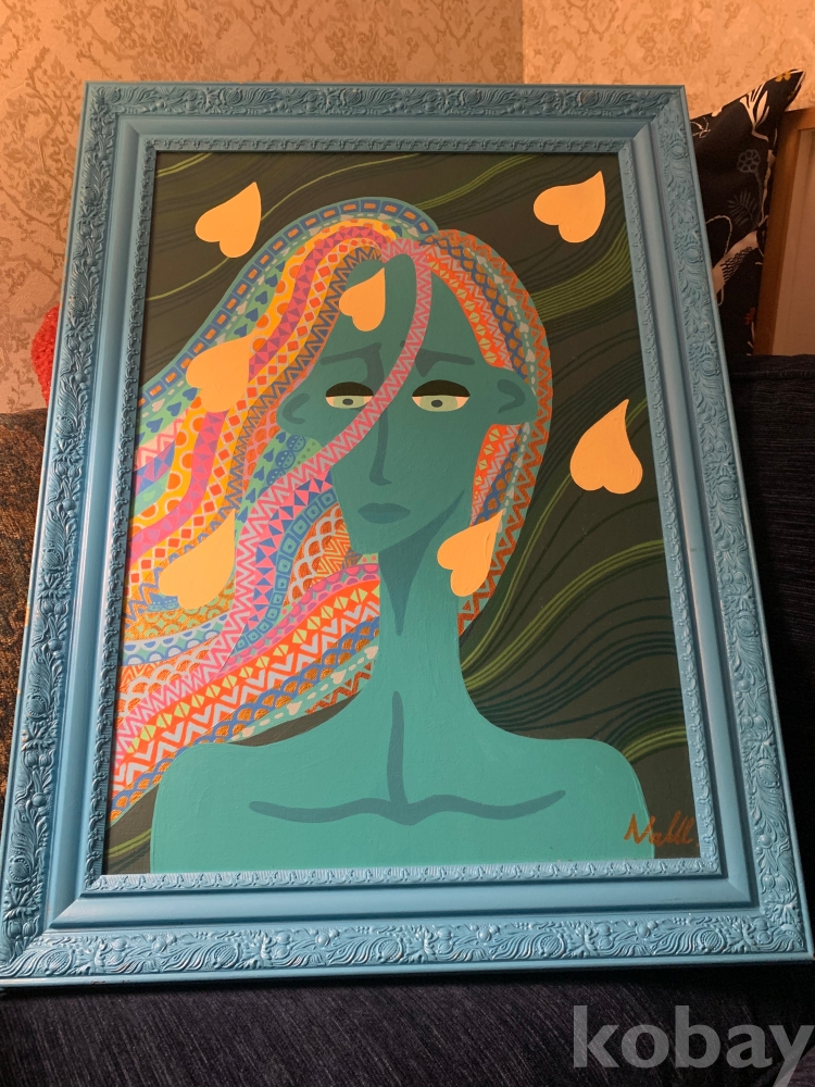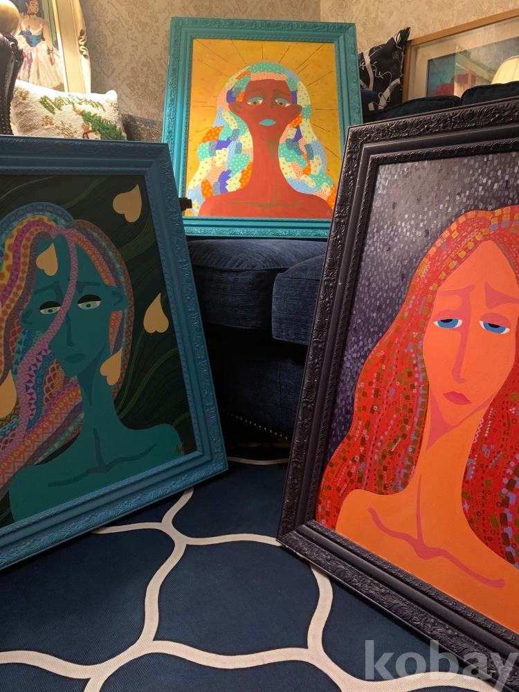 인물의 표정에서 차분하면서도 깊은 정서가 느껴지며, 장식적 요소와 색감의 리듬이 작품 전체에 독특한 분위기를 더해주어