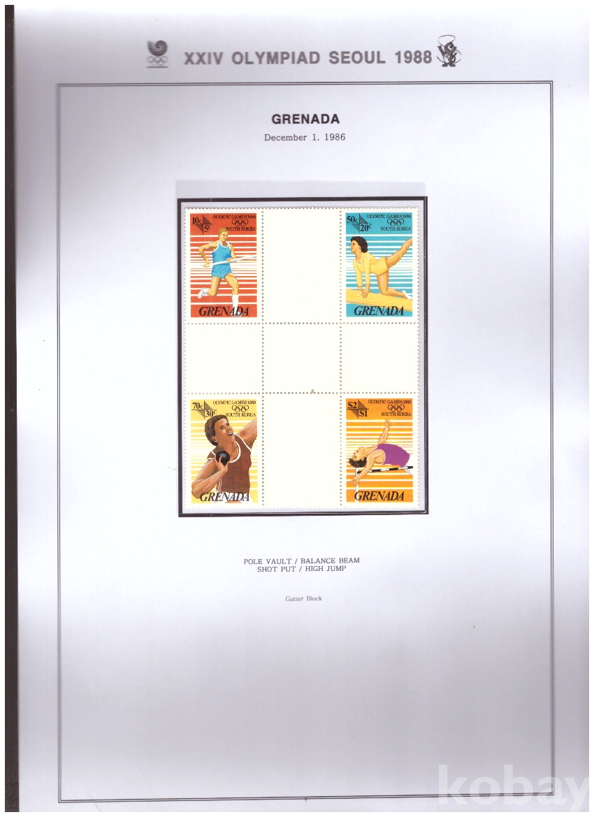 (서울올림픽) Grenada(그레나다) 1986.12.1 장대높이뛰기외 gutter block of 4 MNH
