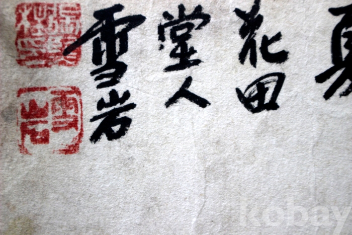 상태 : 표구시 지워질 연한 얼룩이 있고 중앙 상단에 4 cm 정도 갈랒뎠을 뿐 양호하고 좋음