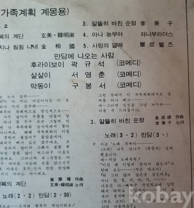 5. 사랑의 열매(孫夕友 作曲,가족계획의 노래)/노래(2.2)만담(2.30).