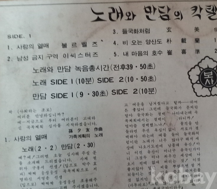 SIDE 2. 1. 행복의 계단(崔燦權 作曲,玄美/韓明淑 노래)/노래(2.2)만담(2.30).