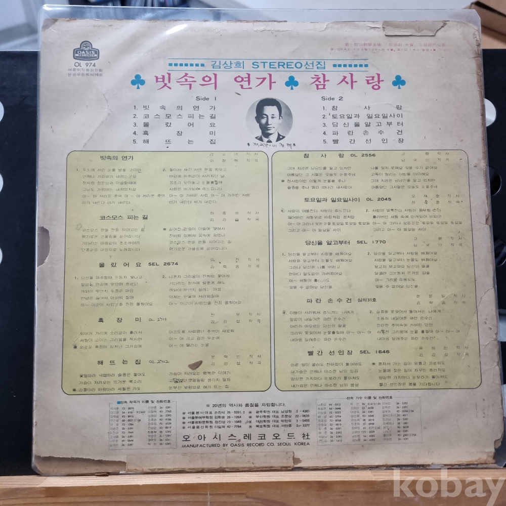 (희귀반) 김상희 스테레오 힛트 총결산 이철혁작곡가 오아시스레코드