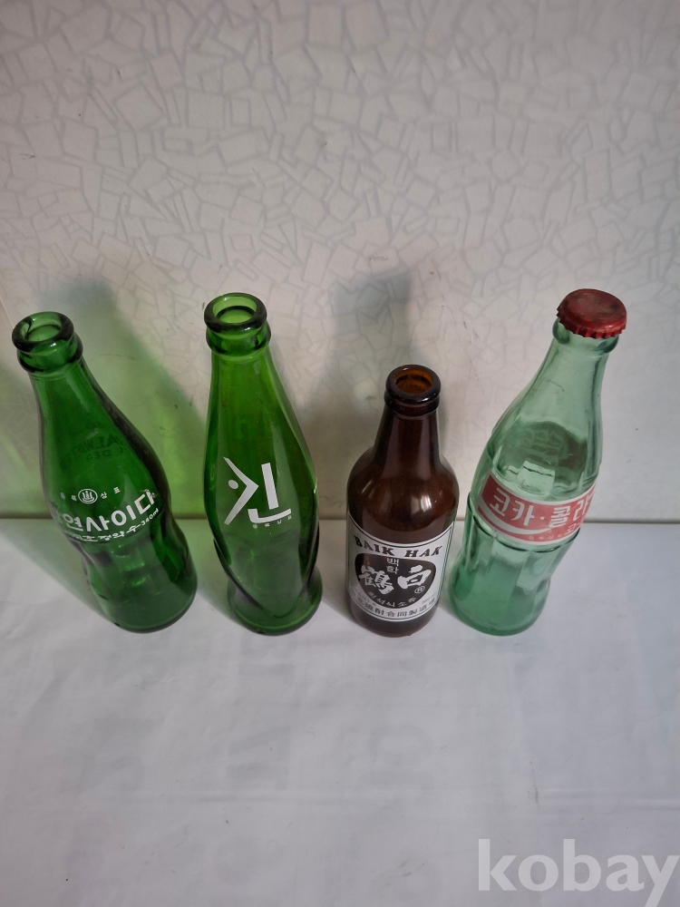 백학소주 유리공병 2홉 코카콜라. 킨. 천연. 합 유리 공병입니다.