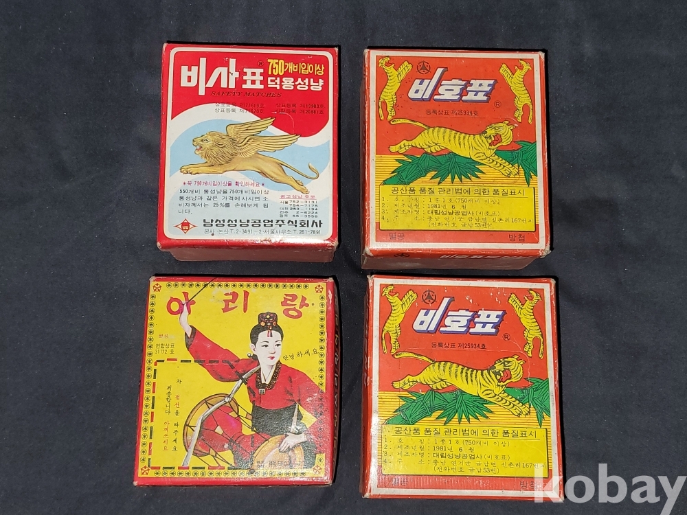 빈티지 세월 감이 느껴지는 80년대 각종 옛날 성냥 1981년 조일 아리랑 성냥, 남성성냥공업 비사표 덕용 성냥, 1981년 대림성냥공업사 비호표 성냥 등 4종 일괄입니다.