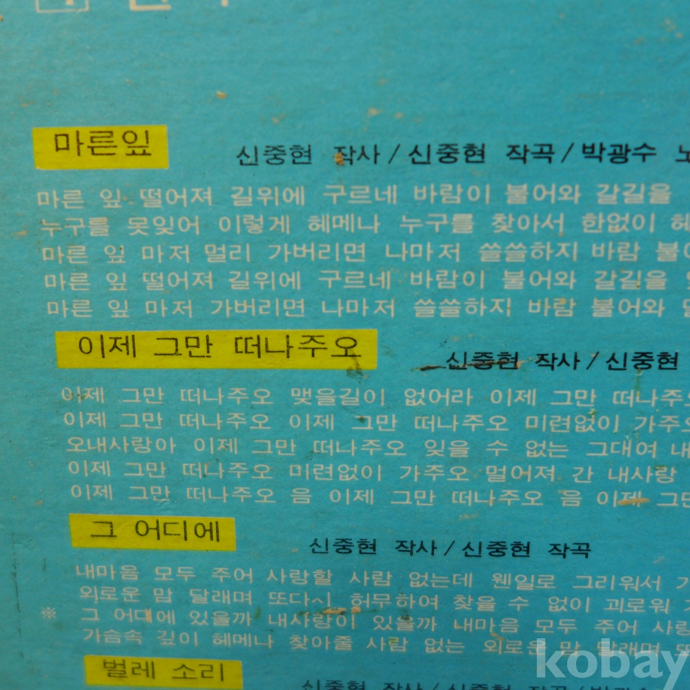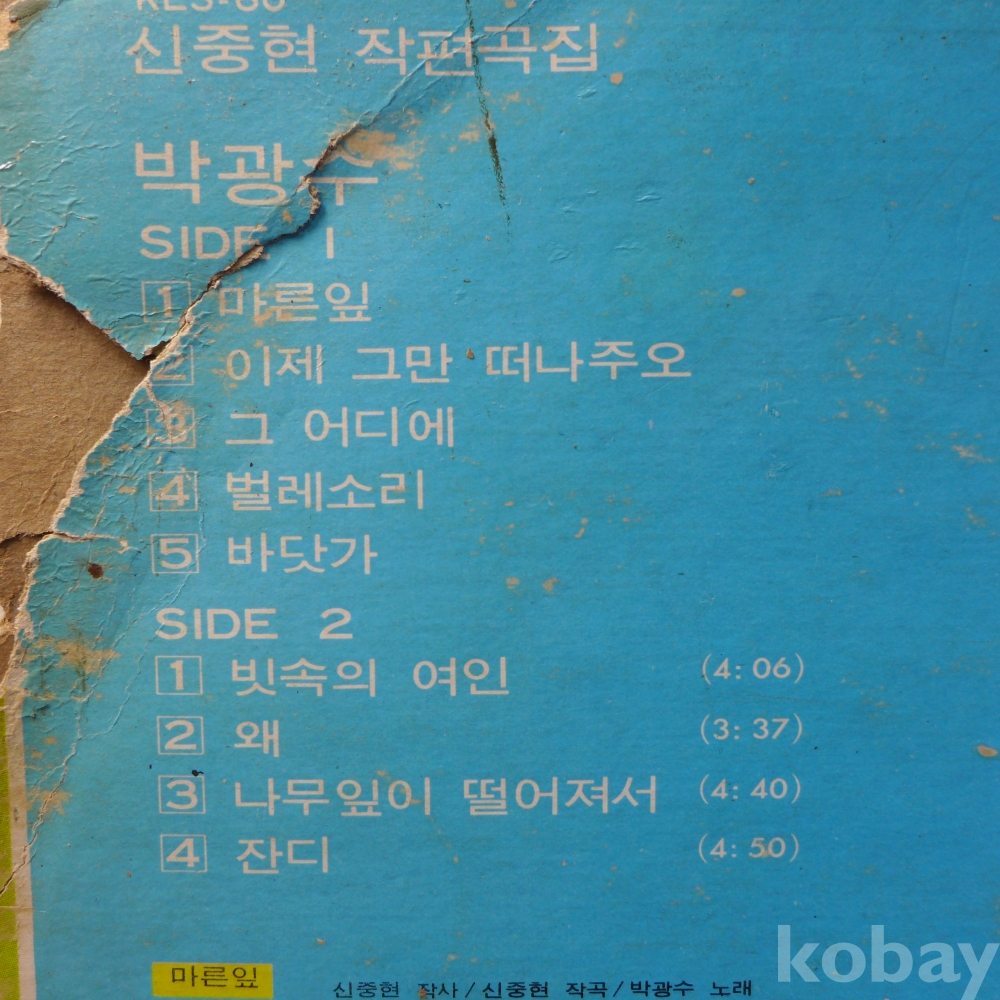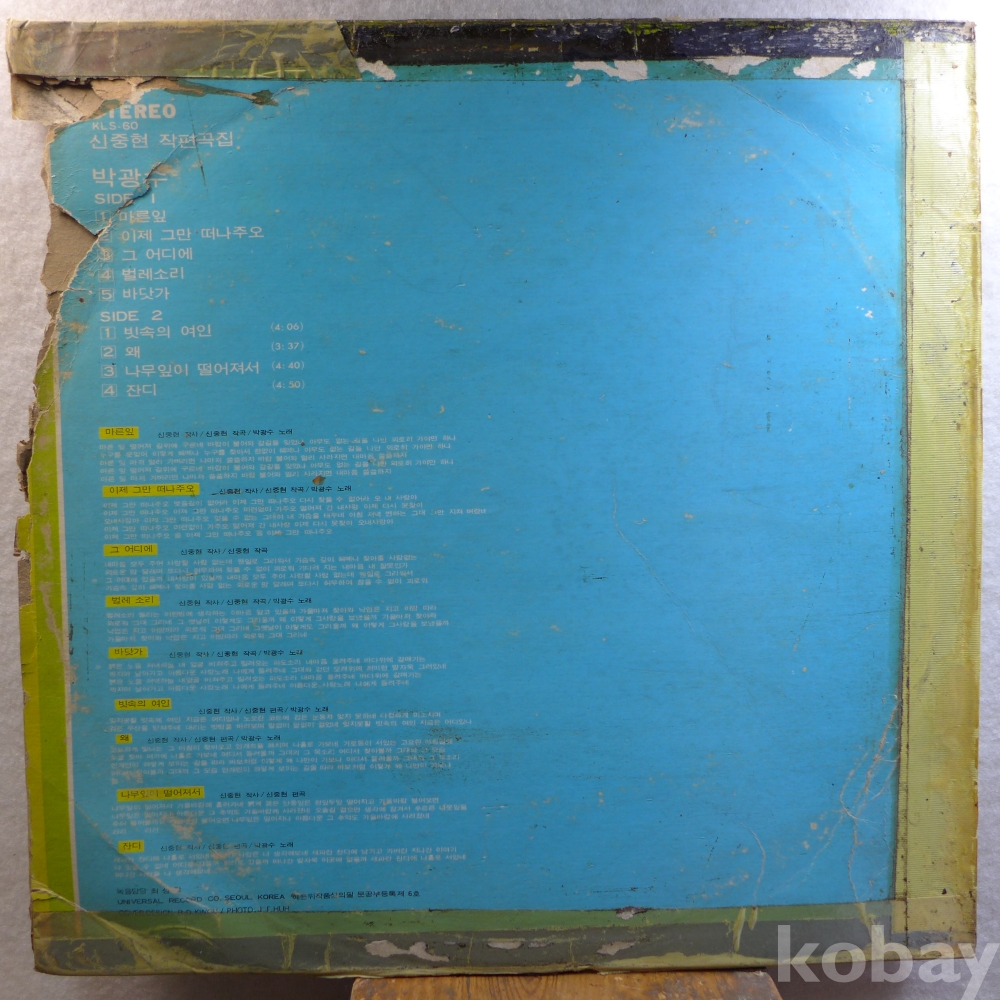 | 자켓상태 | G : 눈에 띄는 손상, 테이프, 필기 존재 | 음반상태 | EX : 재생에 영향 없는 가벼운 기스 존재 | 발매정보 | 초반 | 가사지여부 | 무 |