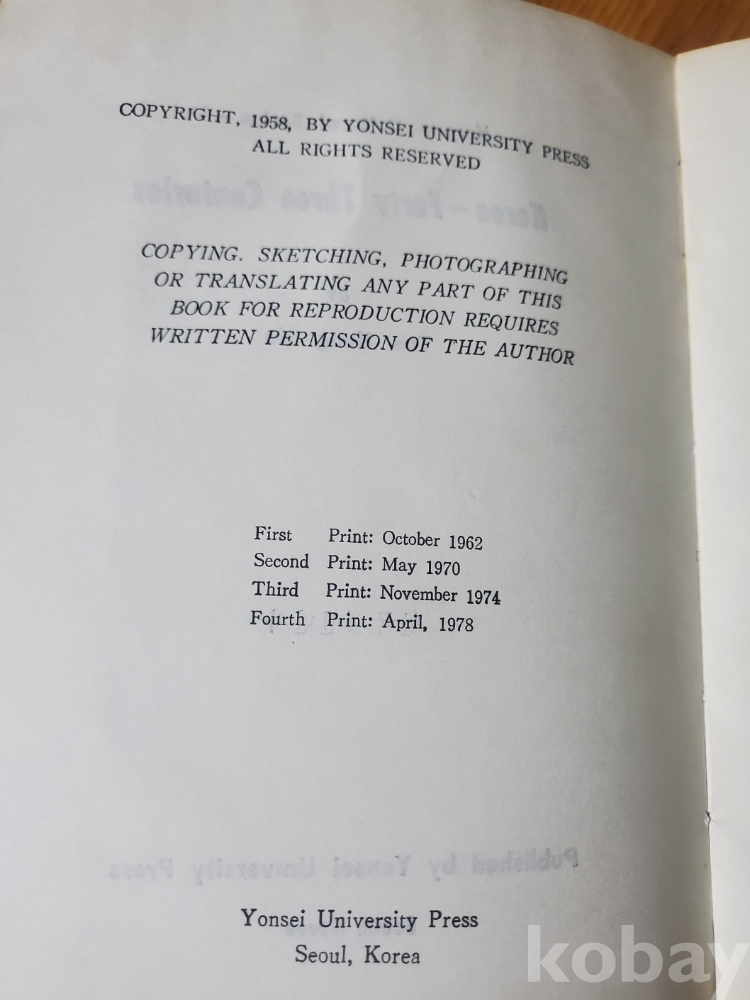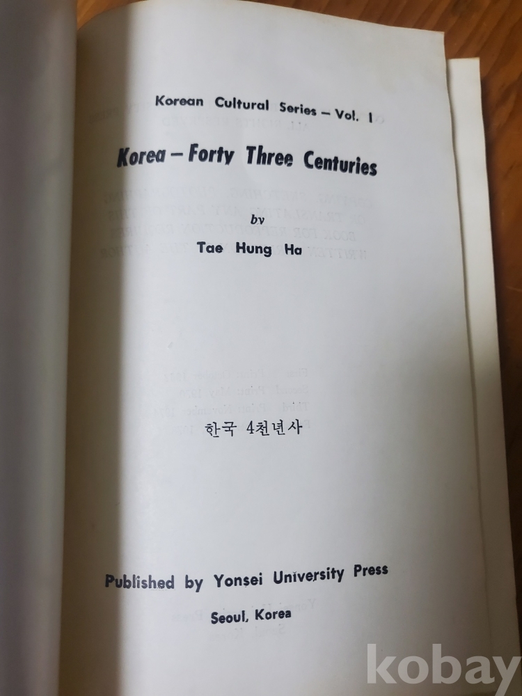 1. 한국 4천년사, 연세대학교, 1978년, 301쪽, 영자판, 상태 상, 사진 참조