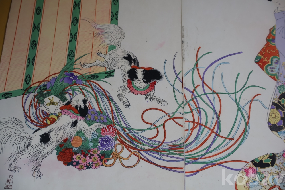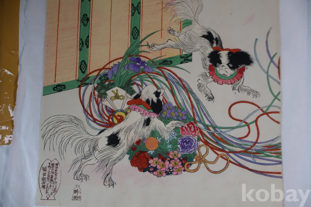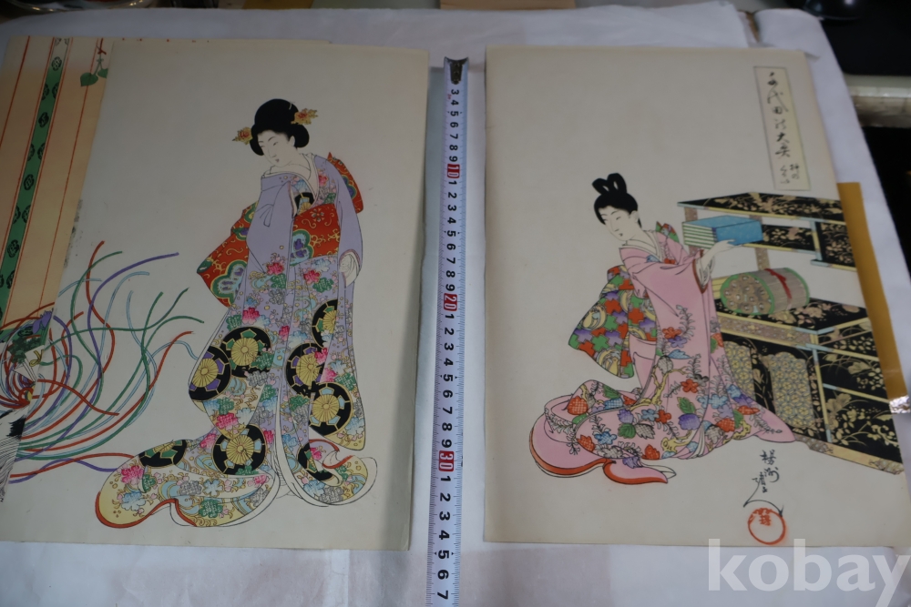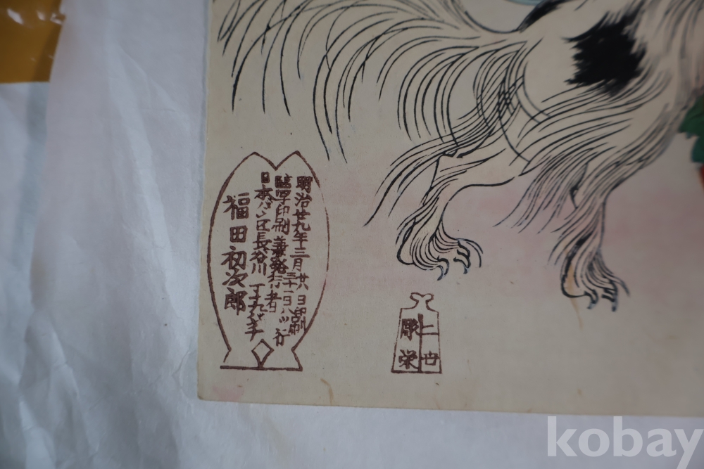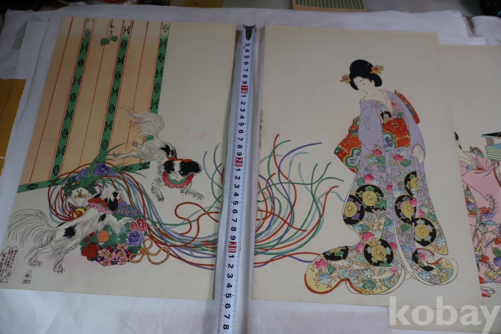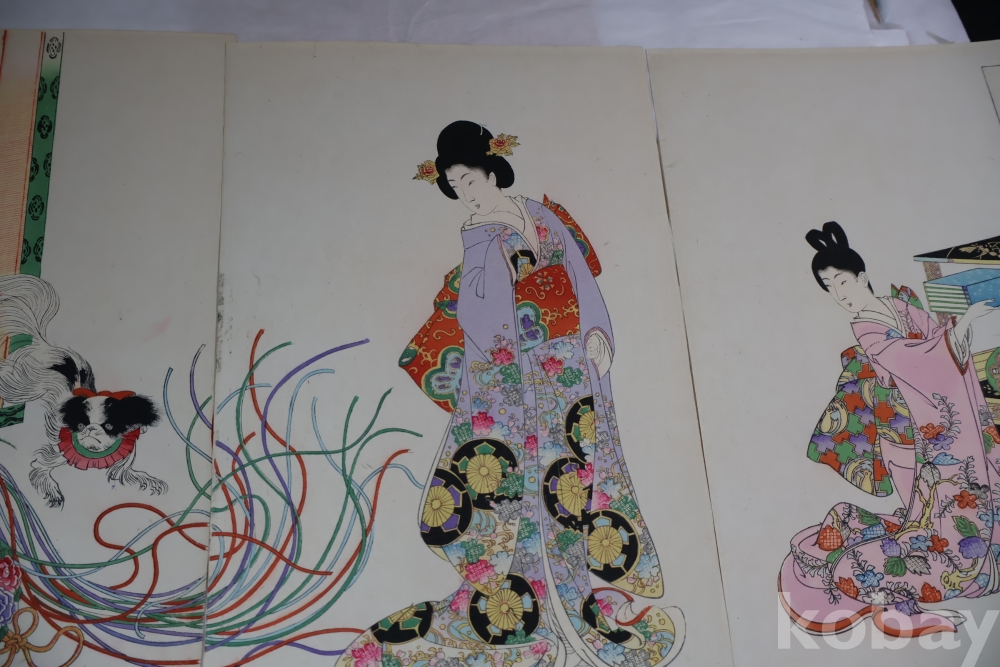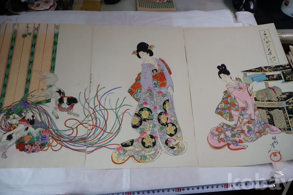 아름다운 목판화 3 세트 임니다 일본 요수 치카노부의 대표작 임니다 강아지를 가진 대표 명작 임니다 사진 참조 하세요 Chikanobu Yoshu (1838-1912)