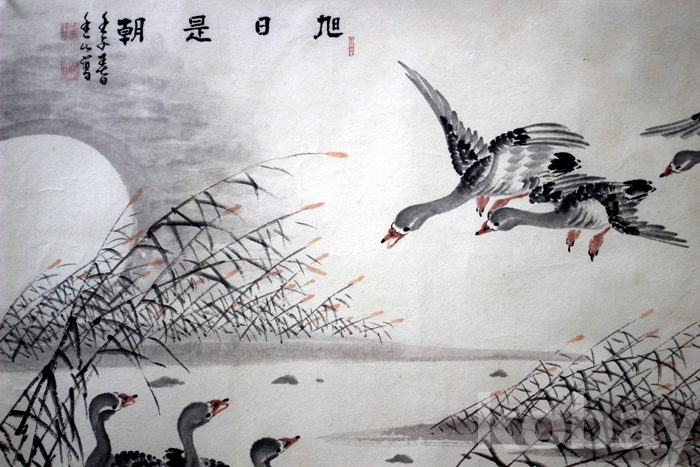 香竹(향죽?)의 노안도 - 달밤의 갈대밭의 청둥오리들