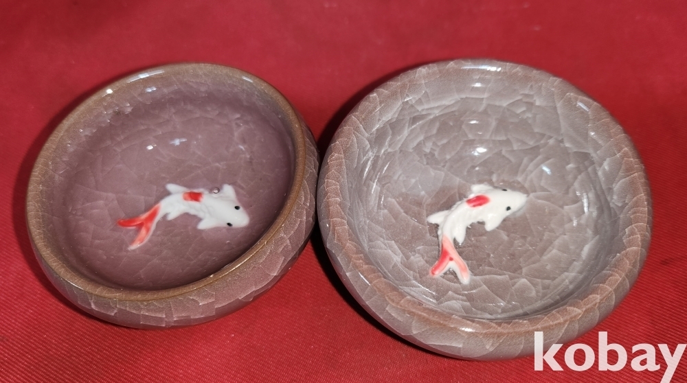 열대어 금붕어가 양각으로 돌출된 도자기 잔2개 일괄입니다,
