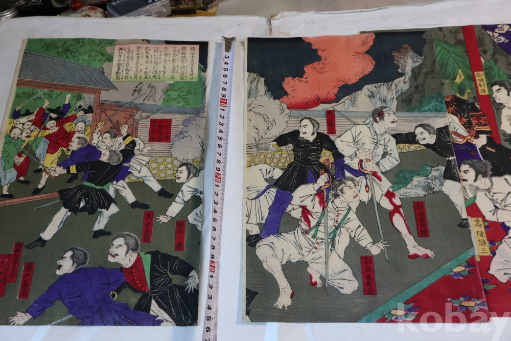 역사적 사실을 알린 일본 목판화 원본 임니다 제작 년도 사건 내용을 가진 명물 임니다 임오군란의 일본 영사관 전투도 임니다