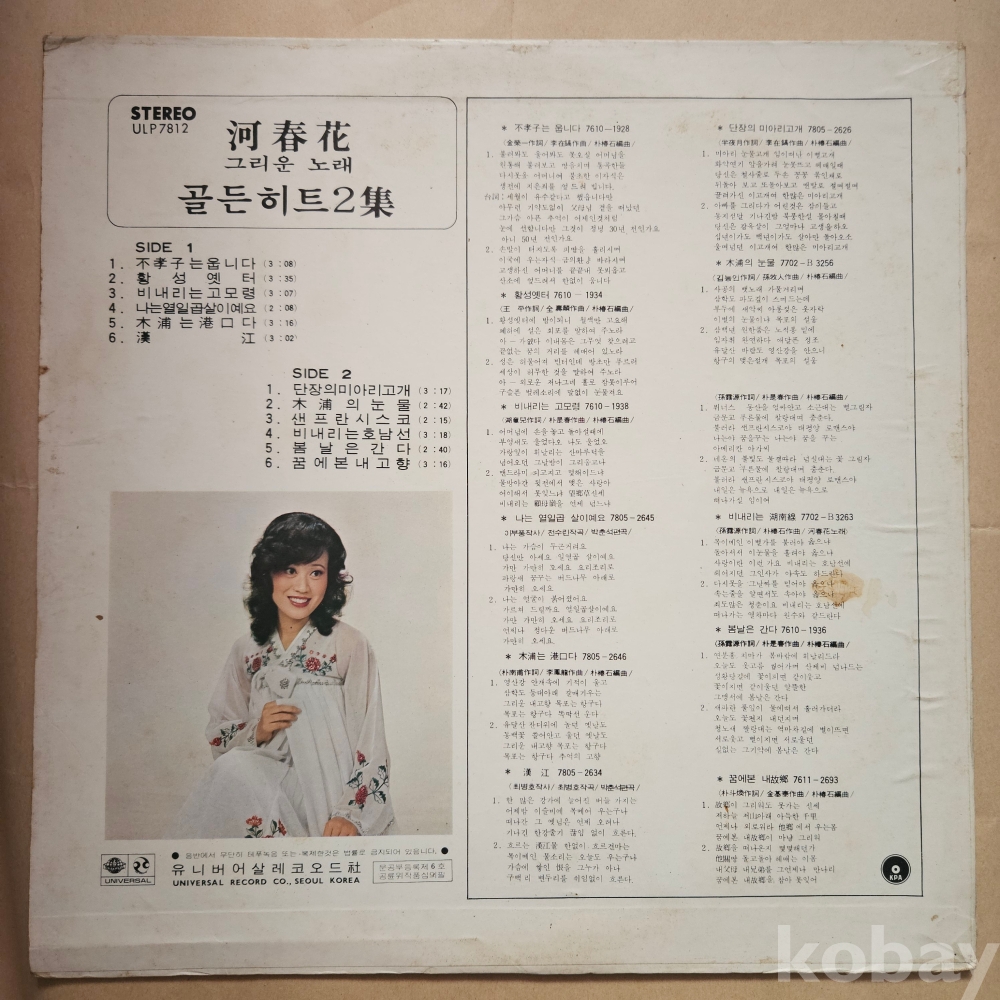 | 자켓상태 | VG : 주름, 접힘, 모서리 찢김 다수 | 음반상태 | VG : 생활 기스 다수, 가벼운 노이즈 존재 | 발매정보 | 초반 | 가사지여부 | 무 |