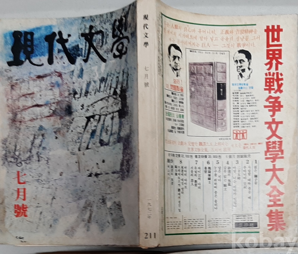 (별고)현대문학1972년7월호 NO211 표지 남 관