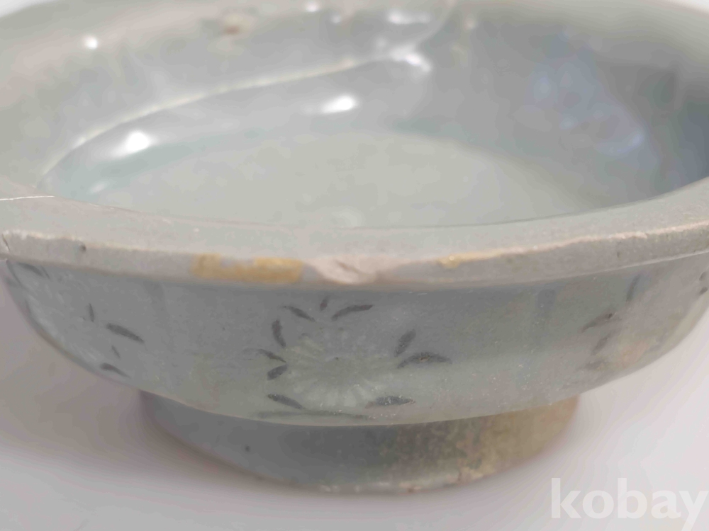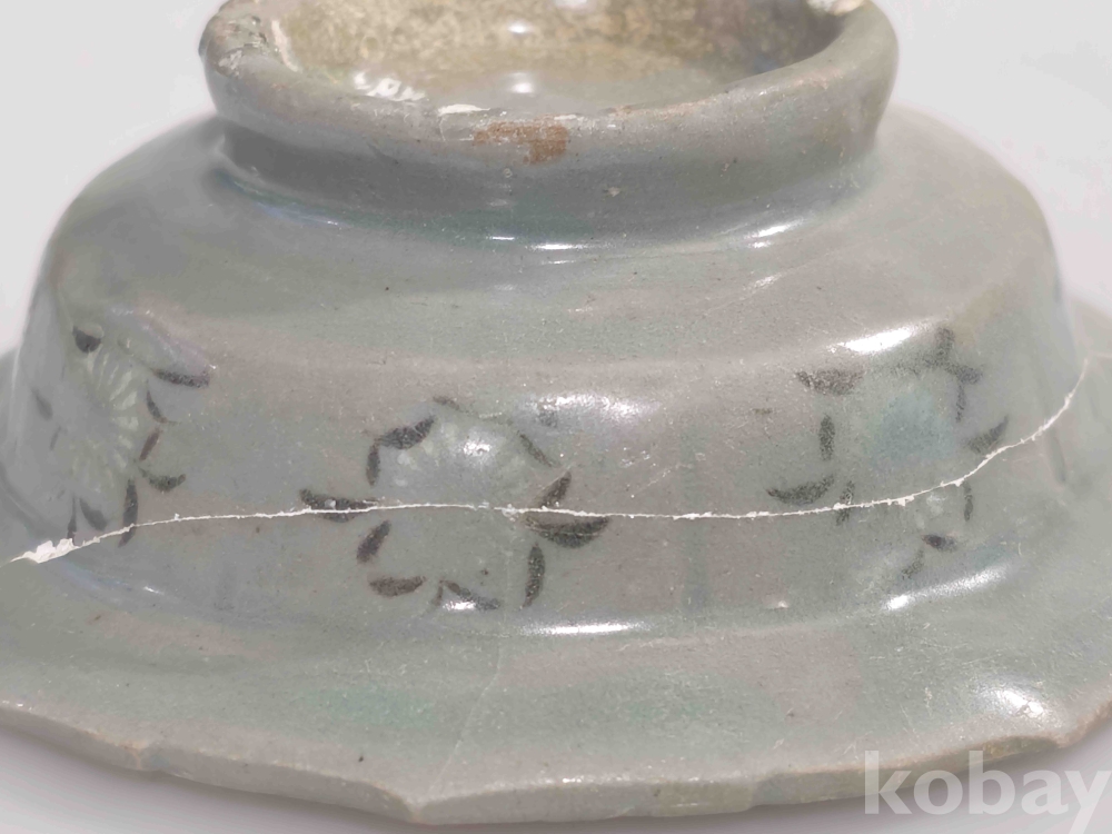 상품 설명 | 고려청자 관요 흑백상감 국화문 화형 완입니다. 한쪽면에 산기가 있으며 제살붙임과 비늘튐 수리가 있습니다. 참고로 사진은 확대한 상태이며 설명 못한 부분은 사진으로 대체합니다. 흔한 기물이 아니기에 소장의 가치가 높습니다. | ||