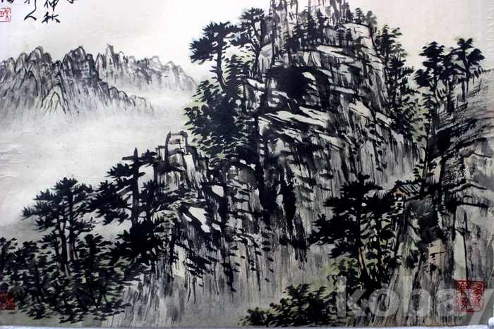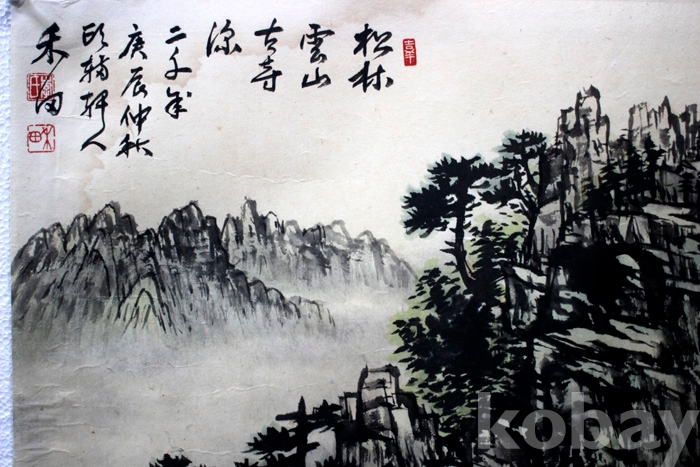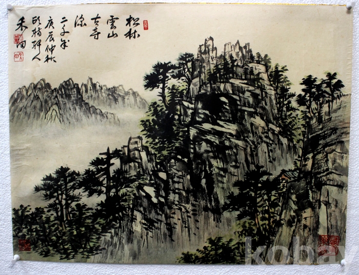禾田(화전)의 기암괴석이 있는 산 정상의 풍경
