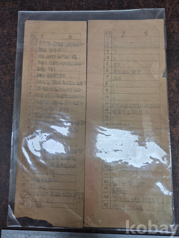 1960년대 국어 받아쓰기 답안지 2점 9*10*27
