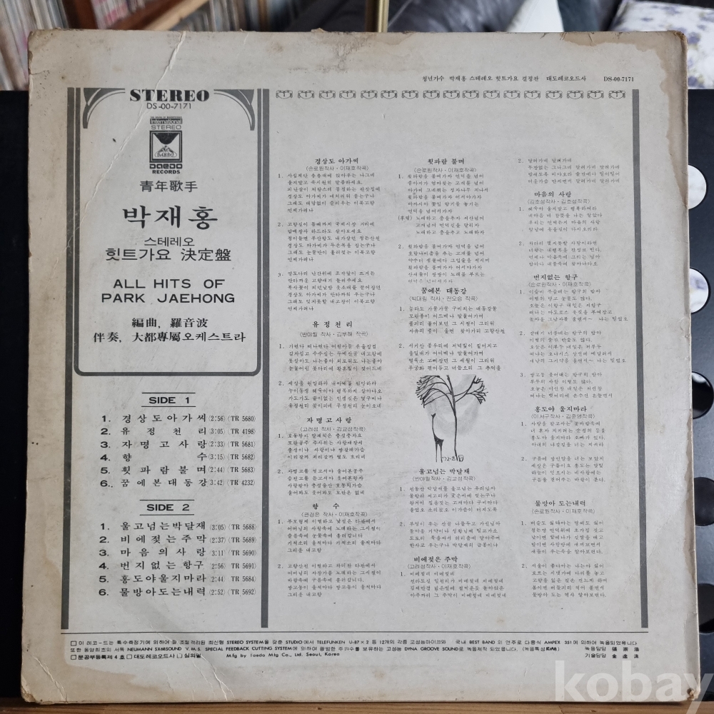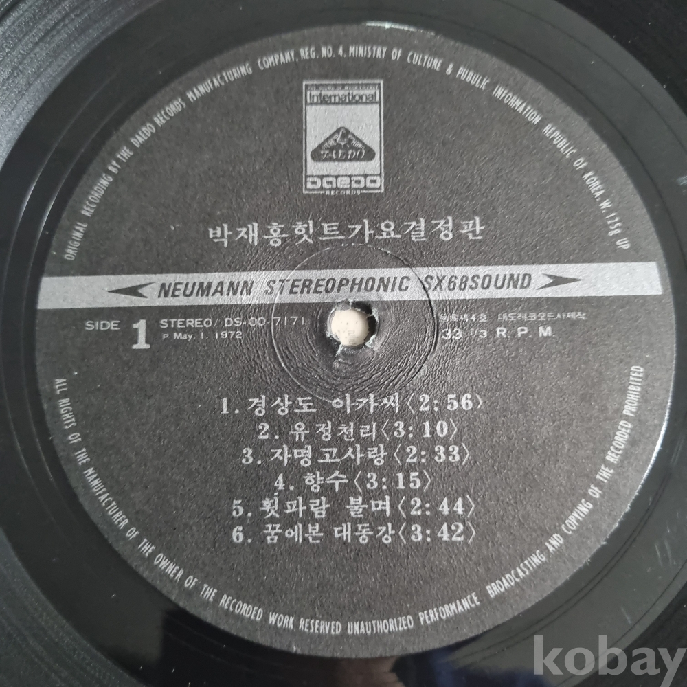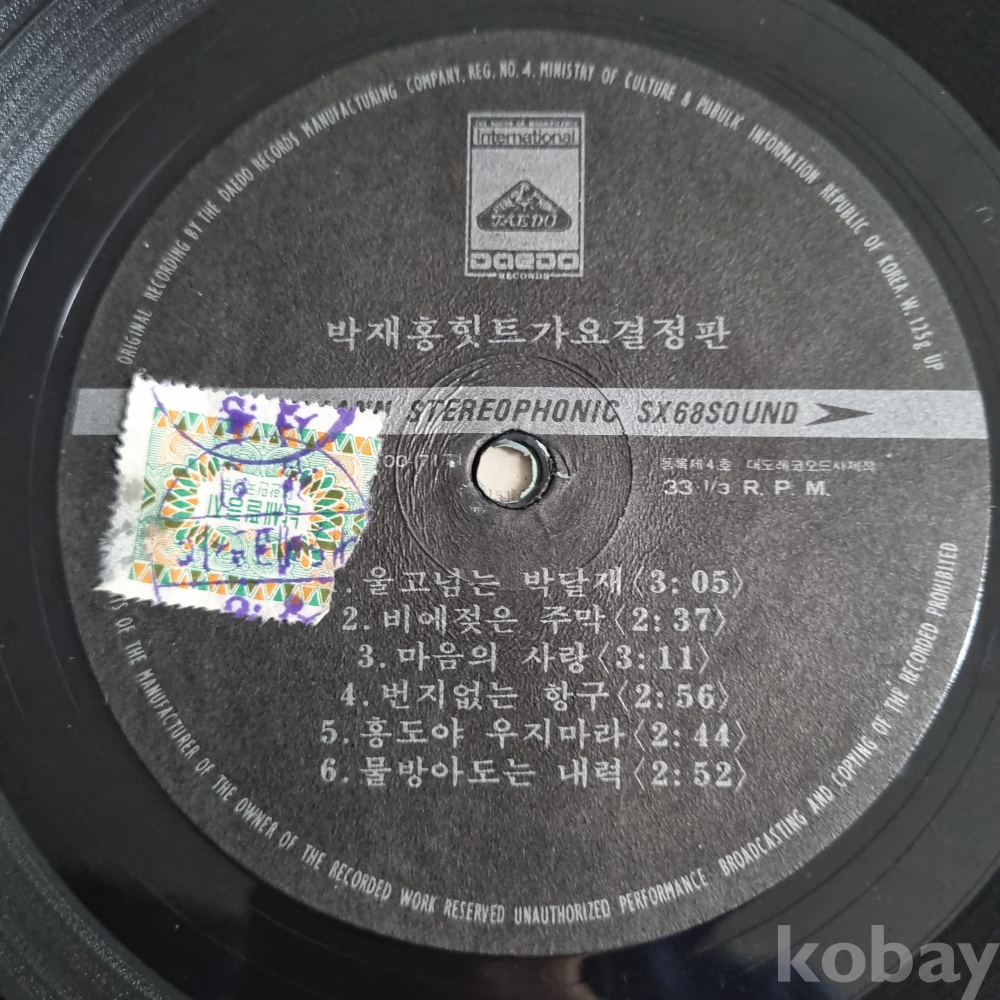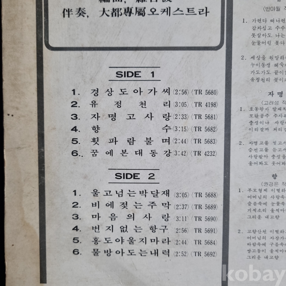 자켓의 노래 순서와 음반의 노래 순서 SIDE 1,2가 서로 바뀌었으며 자켓은 신양레코드로 되어 있습니다.