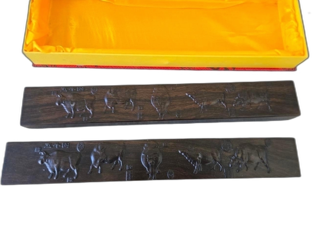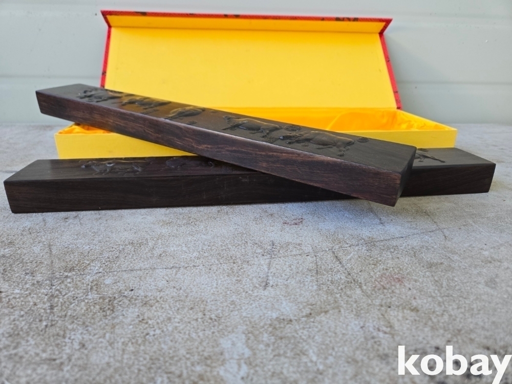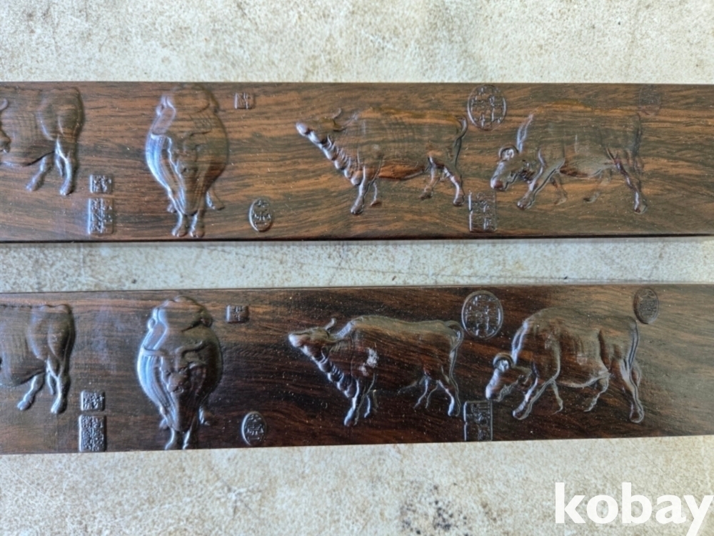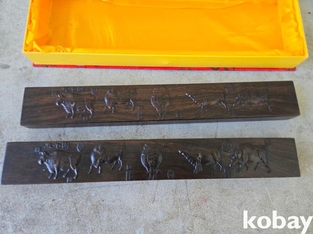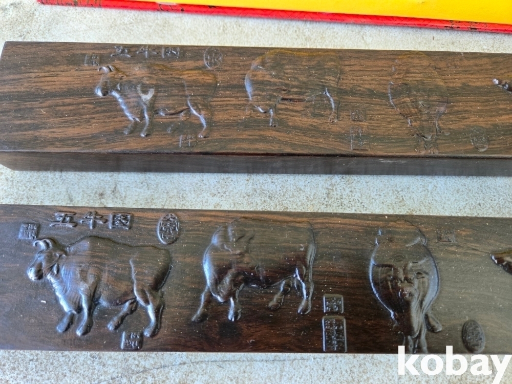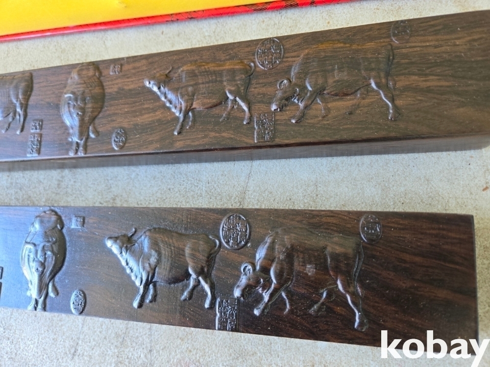 다섯 마리의 소가 돌출로 표현된 무거운 나무 문진 입니다.