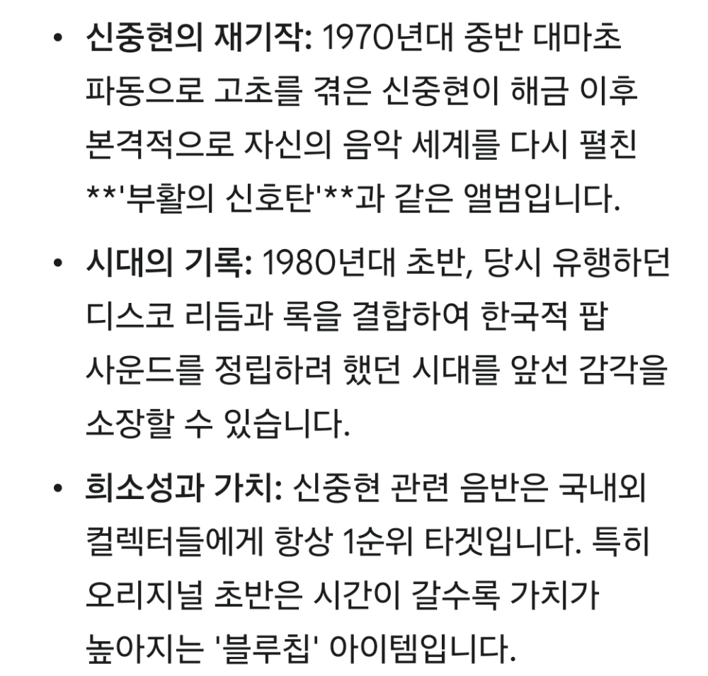 | 자켓상태 | NM : 개봉했으나 미사용, 자켓 손상 없음 | 음반상태 | NM : 개봉했으나 미사용급, 스크래치 없음 | 발매정보 | 초반 | 가사지여부 | 무 |