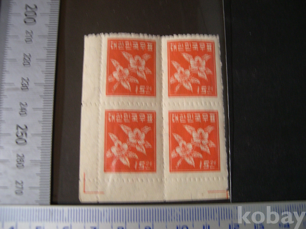 3코너 4매블럭 #120 : 15원 무궁화 - 1차 보통 (1949. 7. 1)
