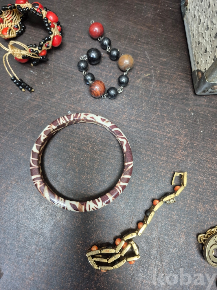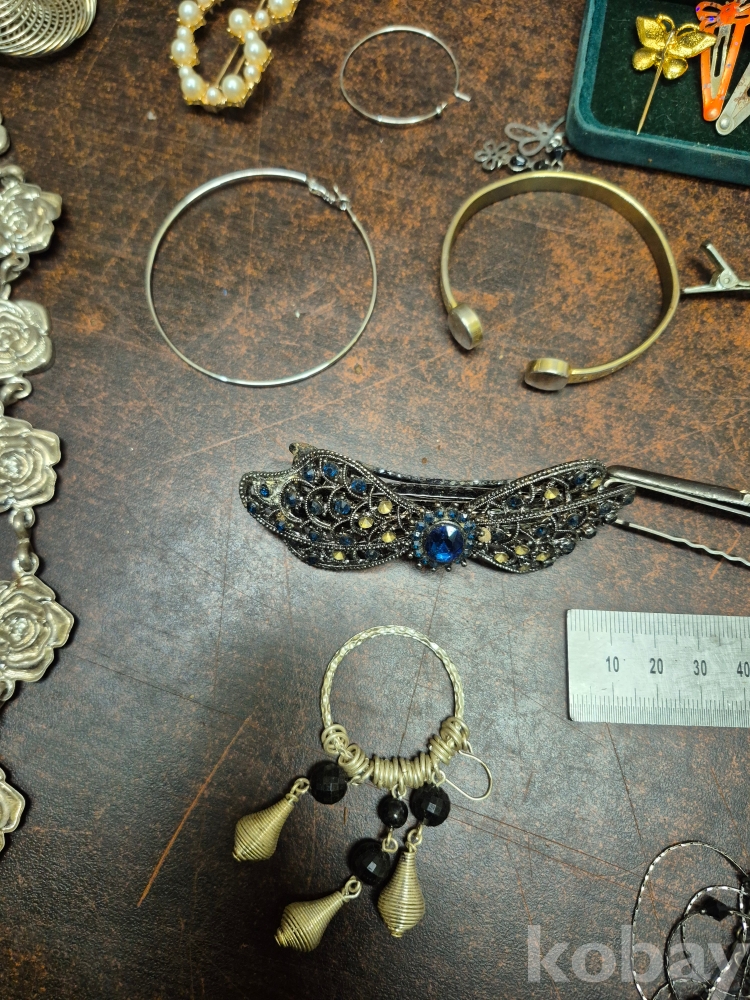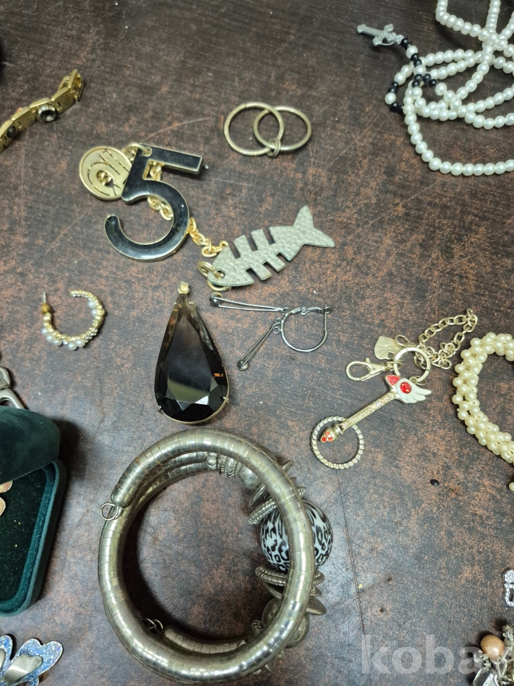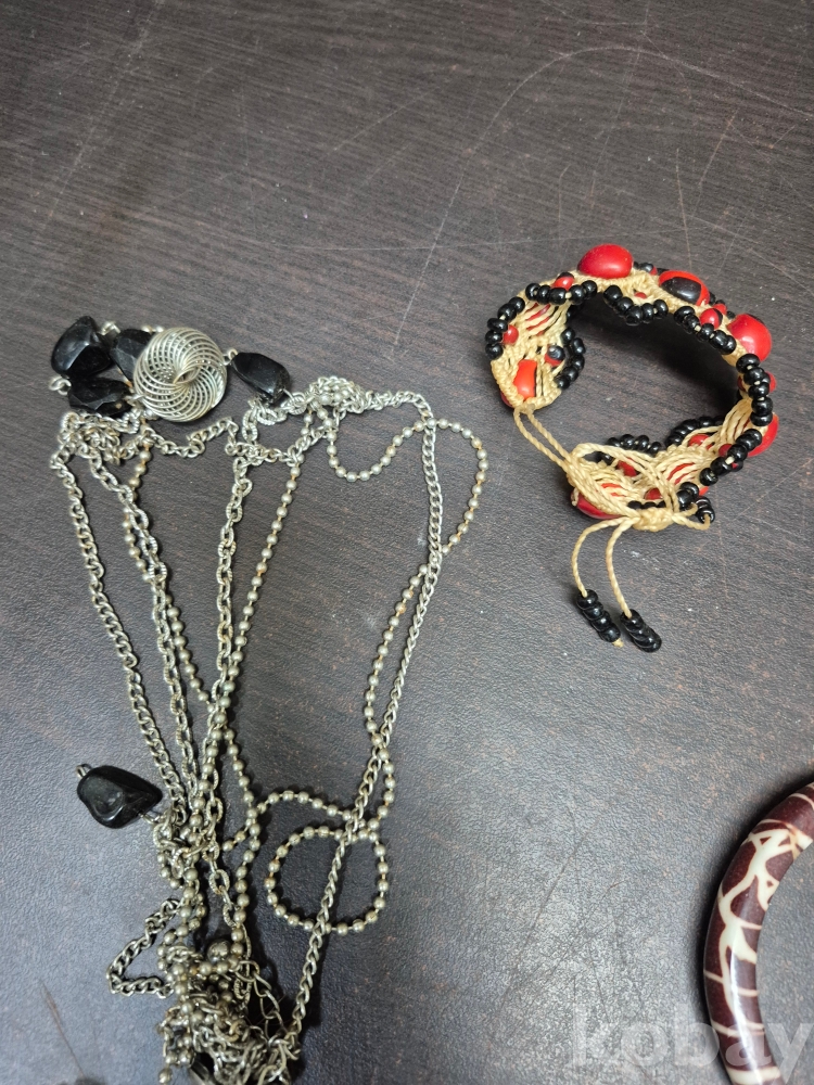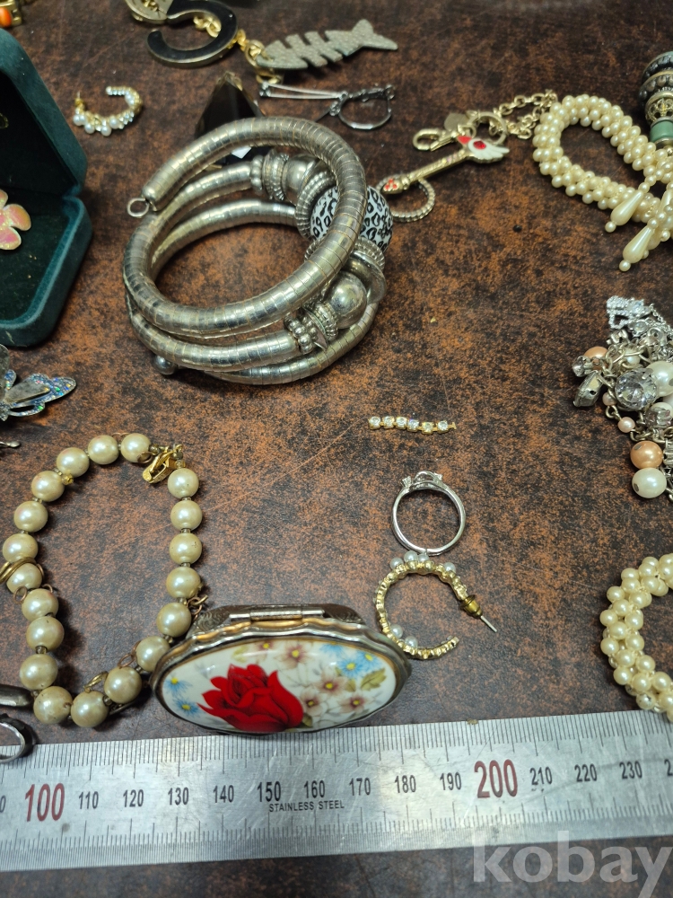 1980년대 각종 보석 이미테이션 목걸이 귀걸이 반지 등 수량 다수 와 에수님 묵주 포함 보관케이스 포함 16*11*15