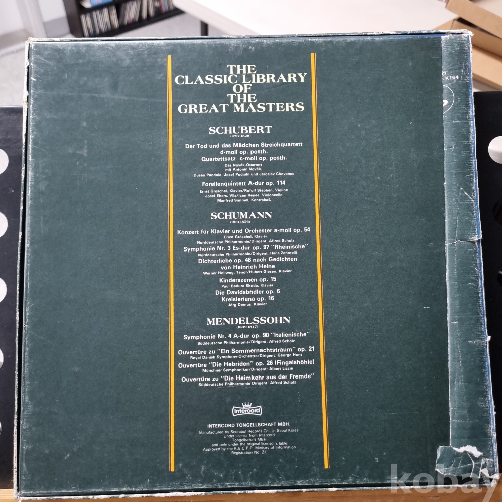클래식 마스터 SCHUBERT/SCHUMANN/MENDELSSOHN 6LP Intercord 서라벌 박스반