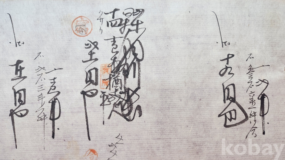 105년 전의 서체로 노후감과 탈색 작은 천공은 보입니다,