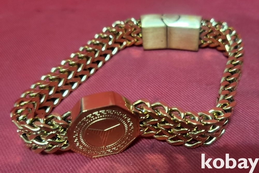 벤츠 마크가 새겨진 항금색 남,녀 공용 미사용 팔찌입니다,