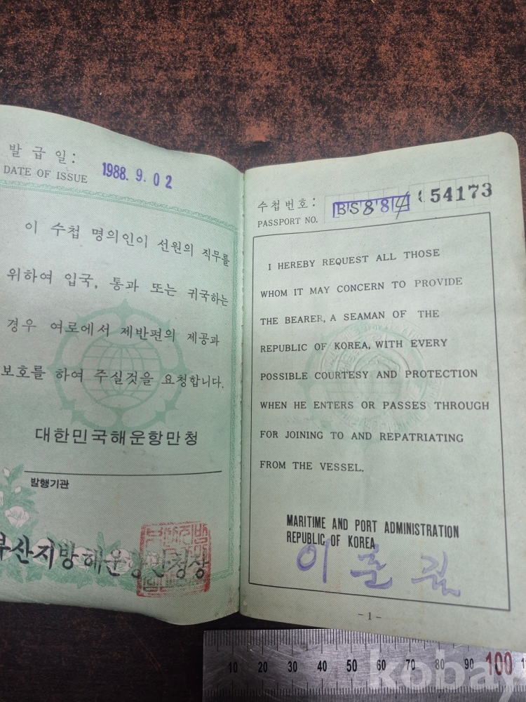 1988년 대한민국 구 여권1점 대한민국 선원수첩 1점 2점 일괄