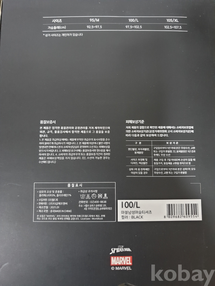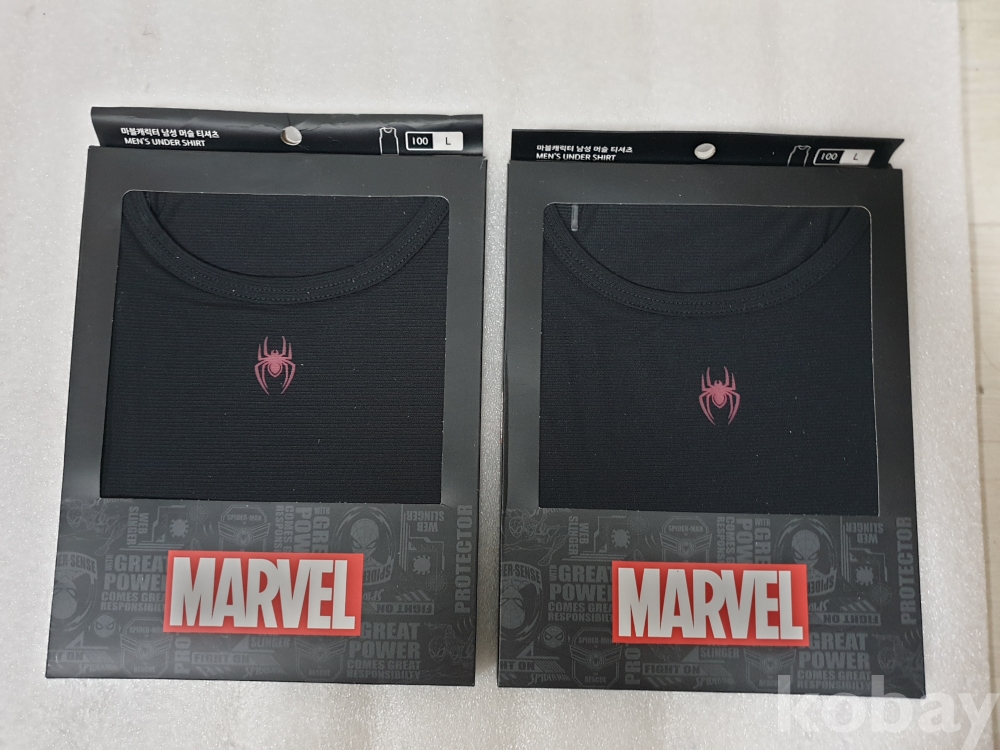 {천원경매} Y-1-1590 마블캐릭터 남성 머슬 티셔츠 블랙 2개 (100, L)