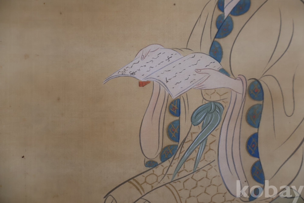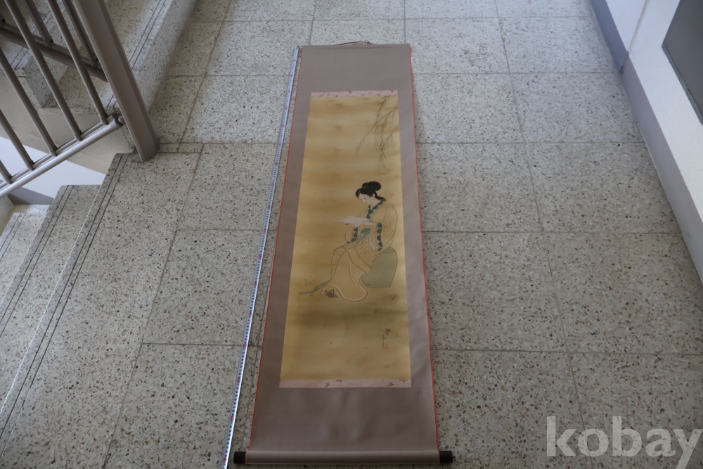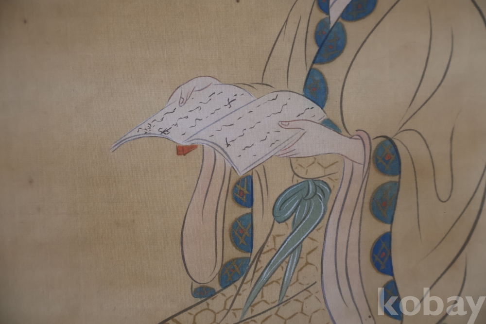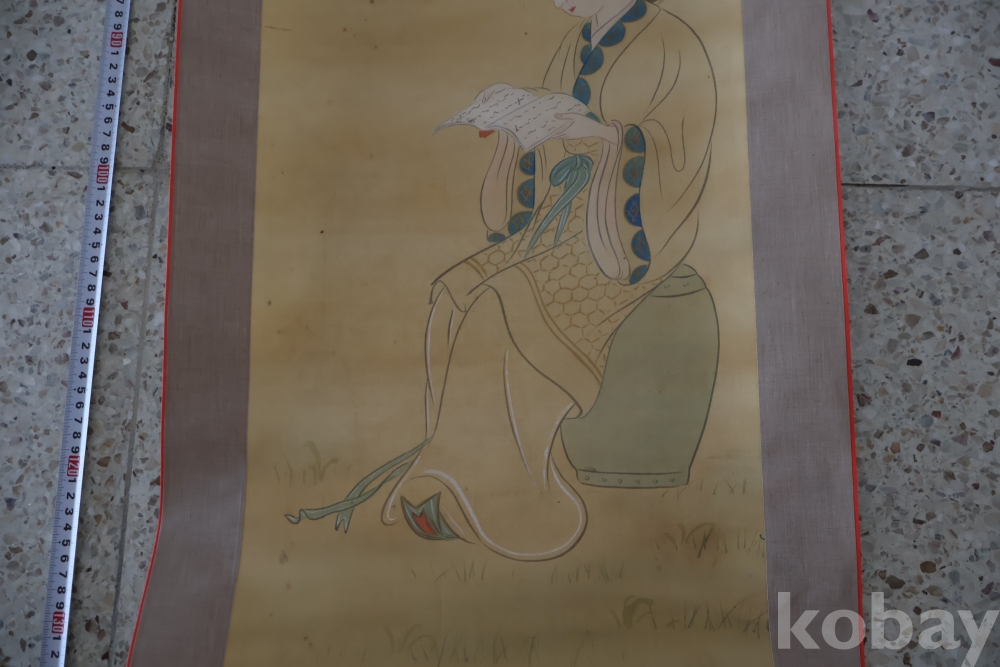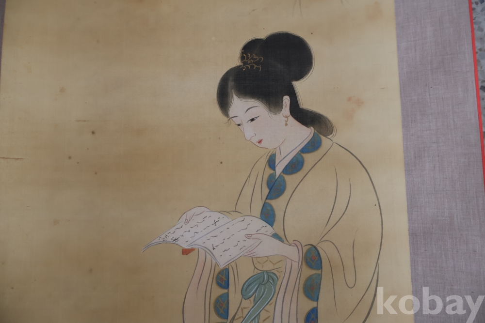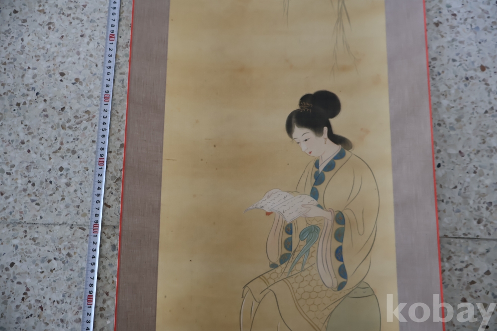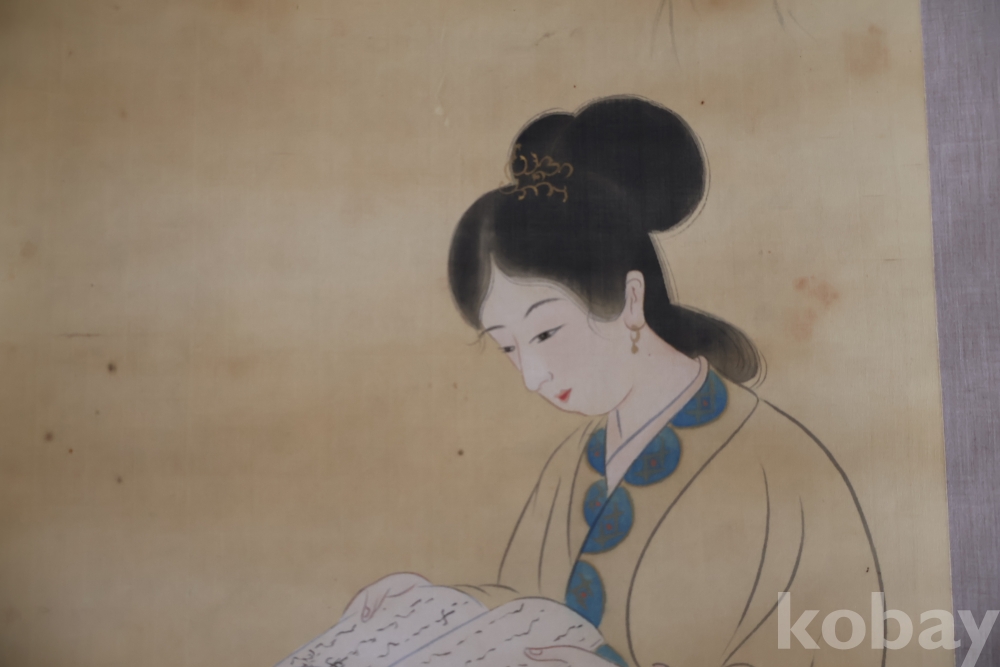 멋진 독서 하는 미인 비단 족자 이며 세월의 흔적이 보이는 우아함과 멋을 가진 명화 임니다 사진 참조 하세요