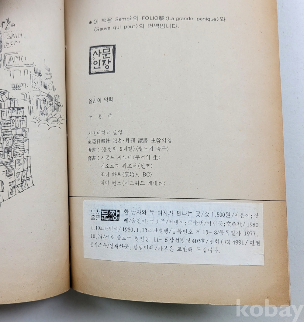 물 품 명 | 상뻬 만화집 / 한 남자와 두 여자가 만나는 곳 / 1980년 초판 / 문장사 |