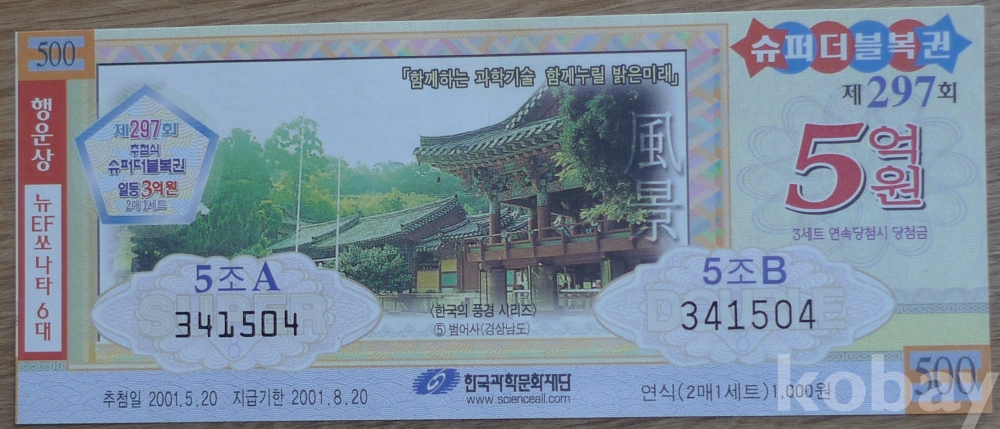 2001년 부산 범어사 배경 슈퍼더블복권 제297회